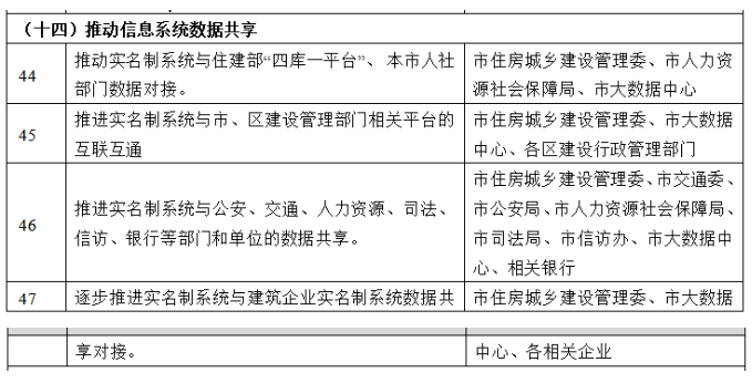 省实名制平台与省住房和城乡建设政务服务系统、公共资源交易电子行政监督平台、工程审批平台、建设工程监管一体化平台、建设从业人员申报管理系统、建设执业资格注册管理系统、建筑施工企业信用评价系统等平台系统对接,加强企业、项目、人员、信用等数据互联共享。