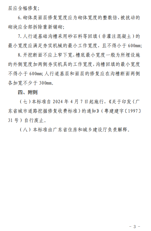 广东省住房和城乡建设厅关于印发《广东省城市道路挖掘修复收费标准(2024年修订)》的通知
